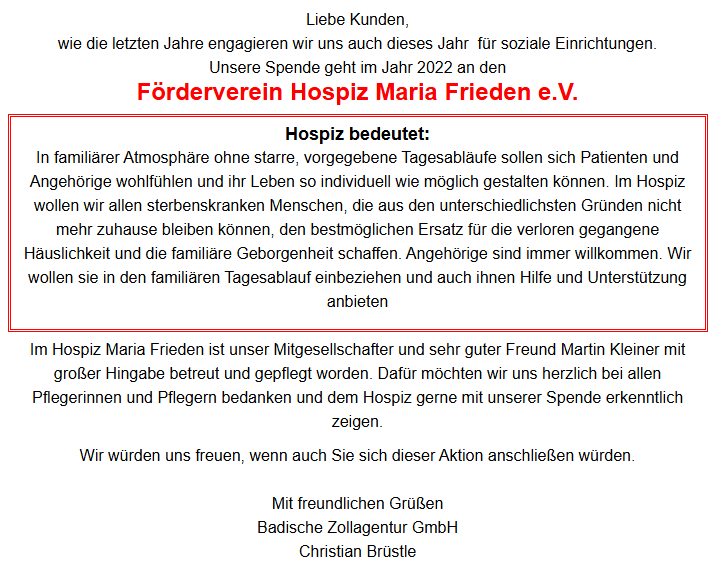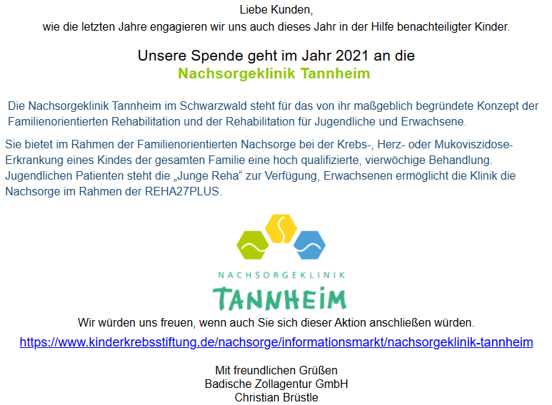Gemeinnützige Initiativen der Badischen Zollagentur